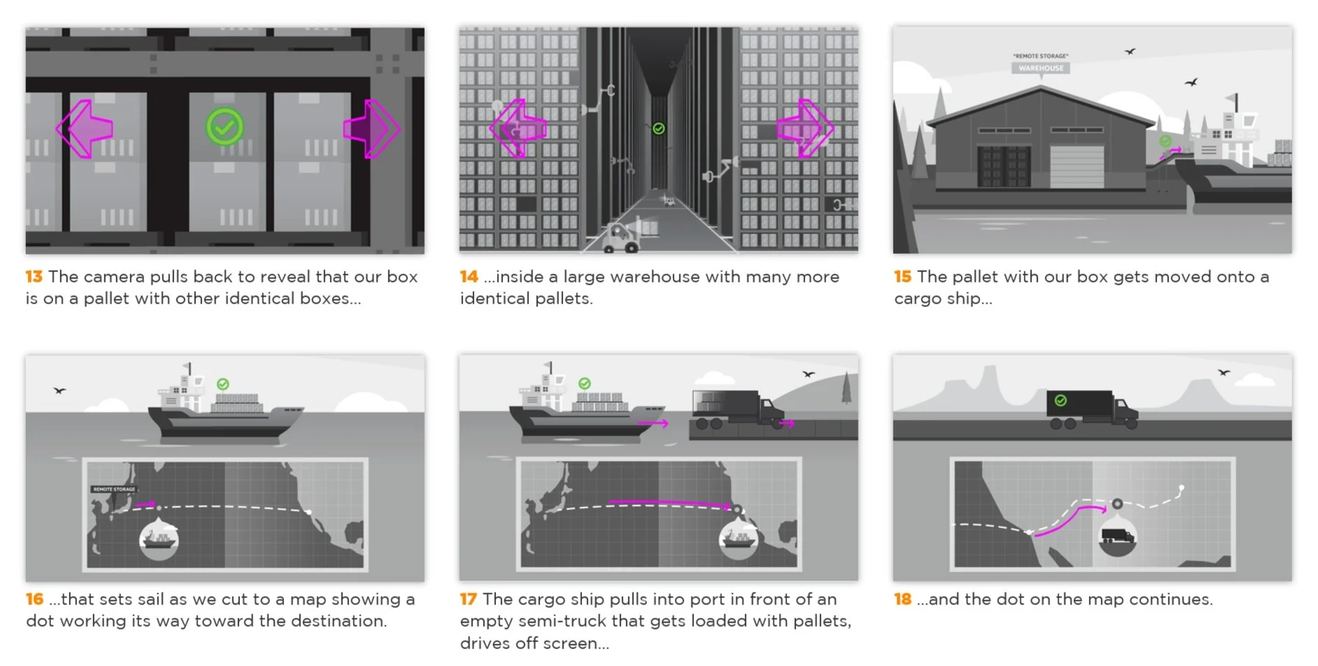 An internal training video explaining to sales teams the difference between memory and storage in a CPU and how to apply this knowledge to selling new products. An analogy of a supply chain was chosen to help communicate the difference in a more tangible way. Above is a clip of the video, as the products described are NDA.